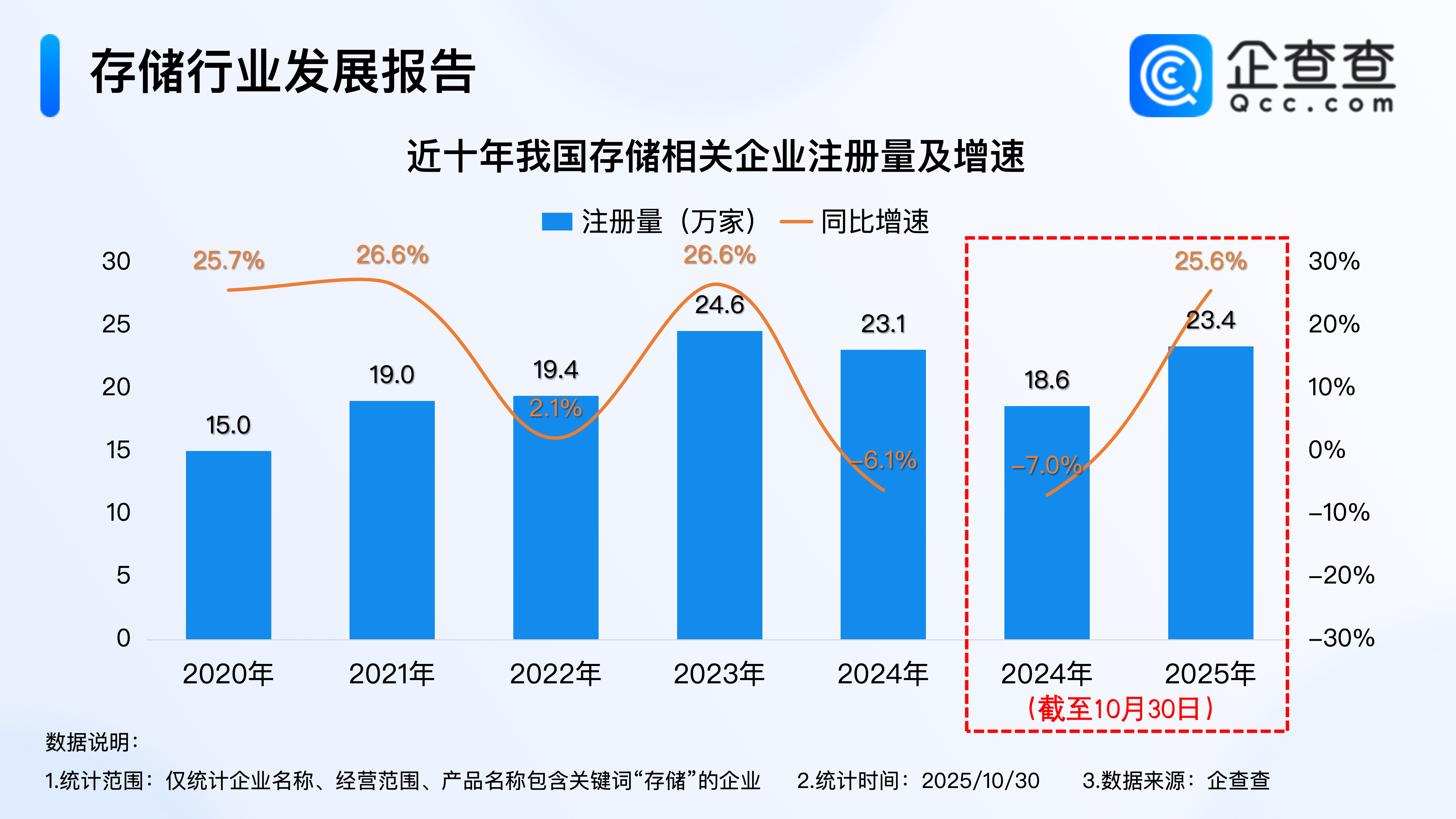 10月30日,全球最大的内存芯片制造商三星电子发布了第三季度业绩:在人工智能领域强劲需求的推动下,三星的芯片业务第三季度销售额较上一季度增长19%,其中存储芯片业务季度销售额创下历史新高。尽管三星HBM3E刚通过英伟达认证,却已剑指HBM4量产以追赶SK海力士的73%市场份额。这场由三星业绩引爆的行业信号,既印证了AI驱动的涨价周期将延续至2026年,更预示着存储行业的技术竞赛与市场争夺已进入白热化阶段。另据媒体报道,在浙江杭州,内存条近一个月价格翻了一番。社交媒体上不少网友纷纷晒出自己所囤的内存条,庆幸提前组装了电脑,“真没想到内存条如今成了‘电子茅台’,涨得比黄金还快。”企查查数据显示,截至10月30日,2025年我国已注册23.4万家存储相关企业,已超2024年全年,相比2024年同期增加25.6%;与此同时,近年来我国存储相关企业存量逐年稳步增加,现存量已超120万家;区域分布上,我国现存的存储相关企业集中华东、华南地区,其中华东地区占比36%。1.从注册量来看:今年已注册23.4万家