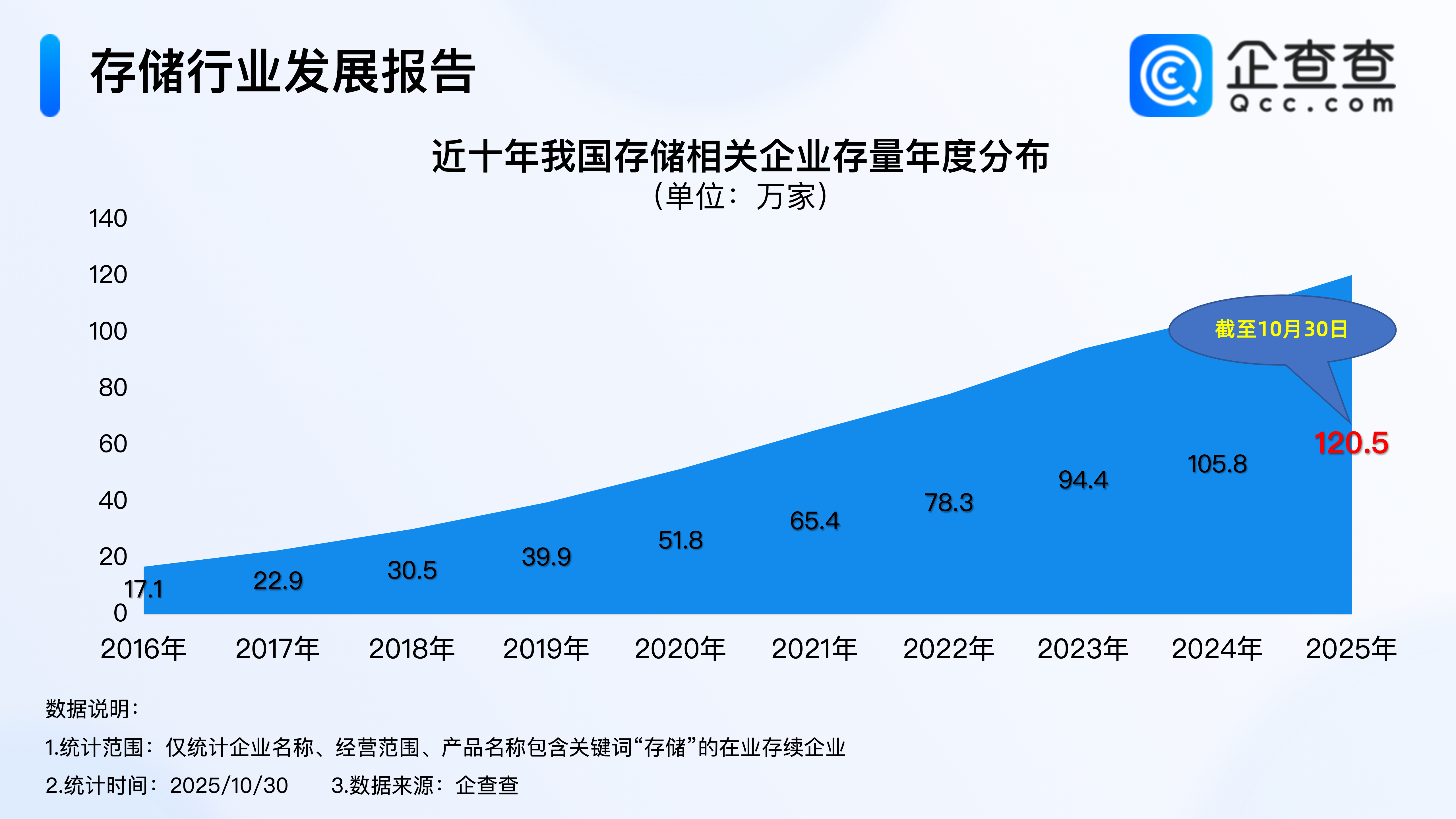企查查数据显示,近年来,我国存储相关企业注册量基本逐年增加,2023年我国累计注册24.6万家存储相关企业,同比增长26.6%,是2020年同期的1.6倍。截至10月30日,2025年我国已注册23.4万家存储相关企业,已超2024年全年,相比2024年同期增加25.6%。2.从企业存量来看:我国存储相关企业存量超120万家